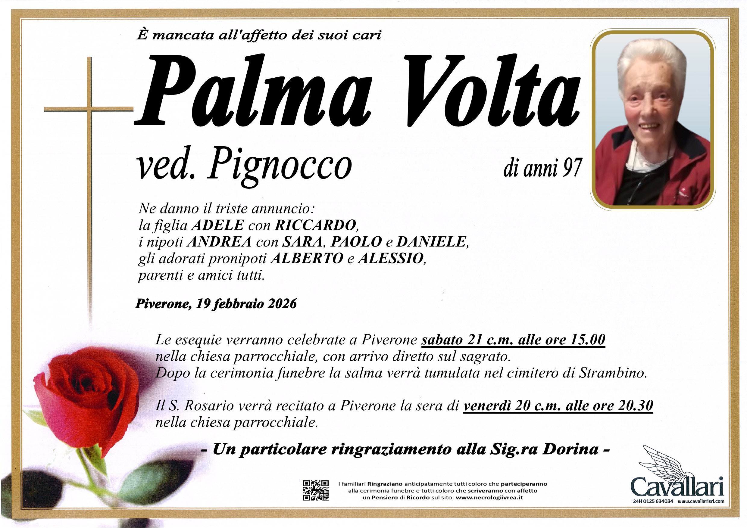 I familiari ringraziano anticipatamente tutti coloro che parteciperanno alla cerimonia funebre
