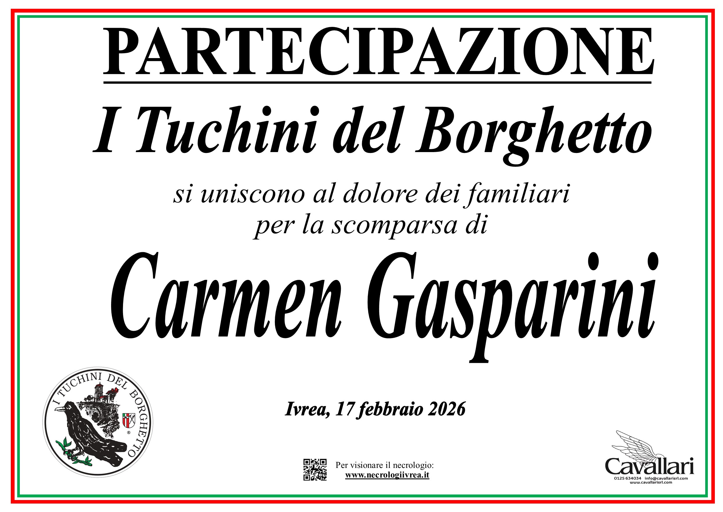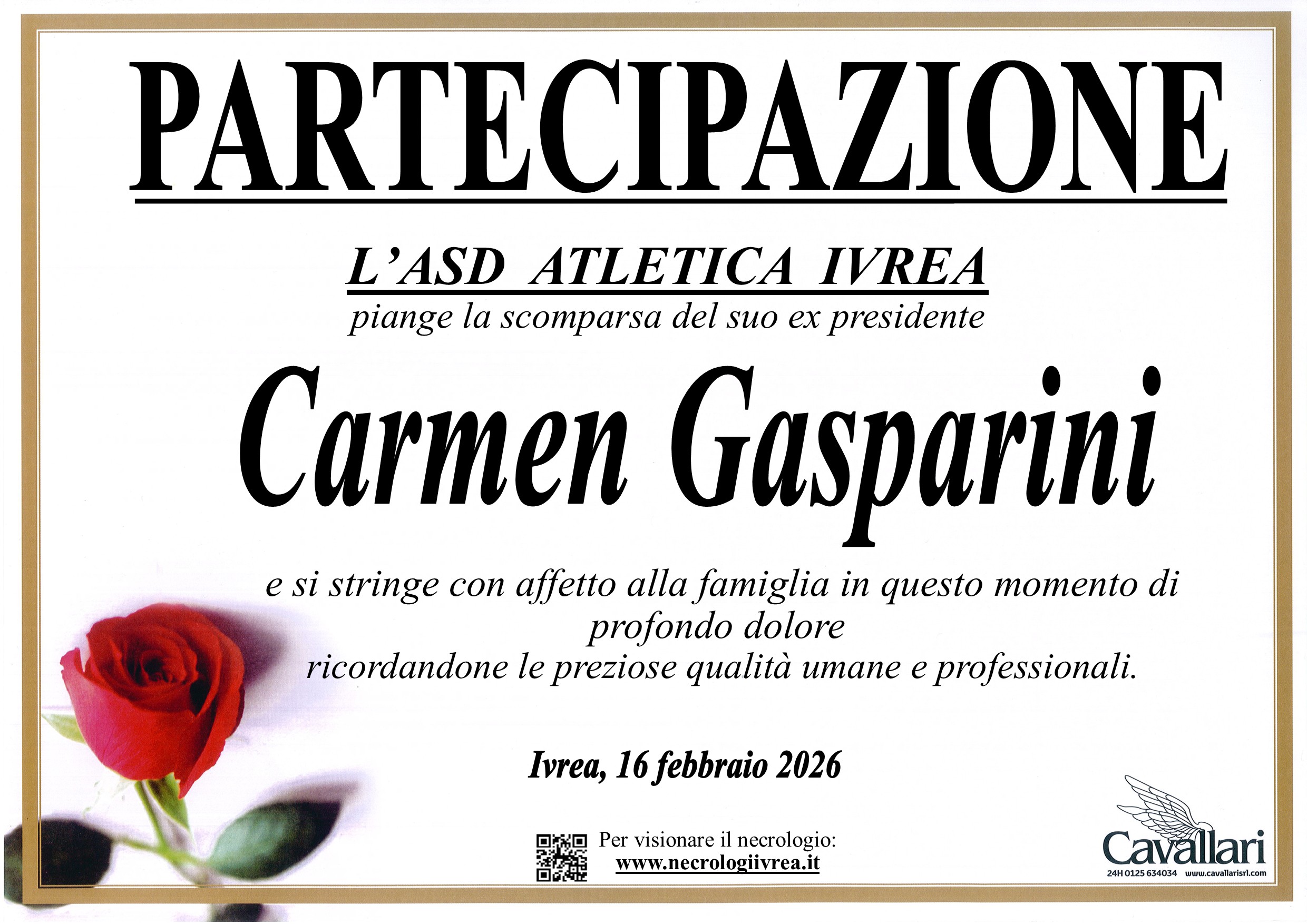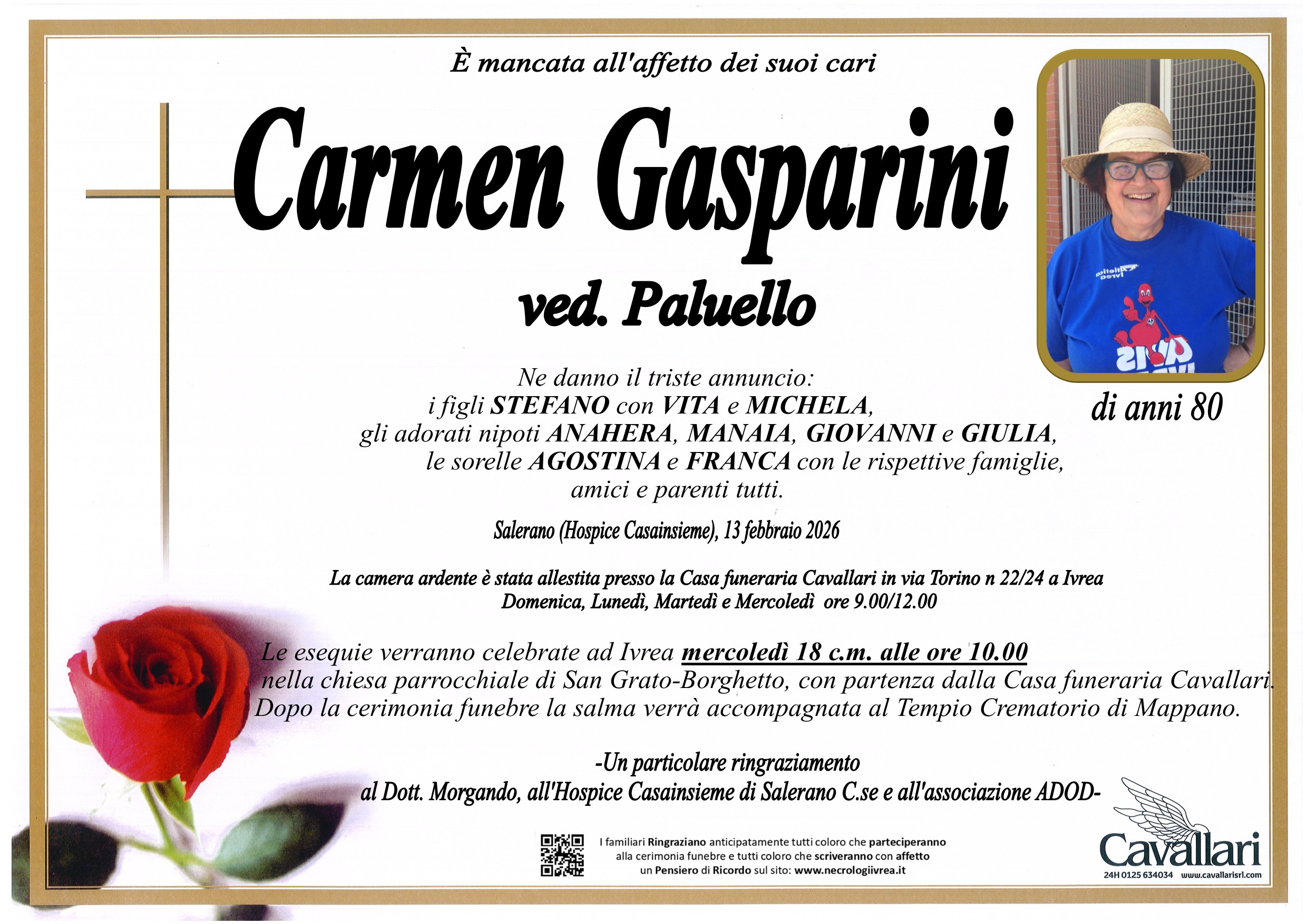 I familiari ringraziano anticipatamente tutti coloro che parteciperanno alla cerimonia funebre