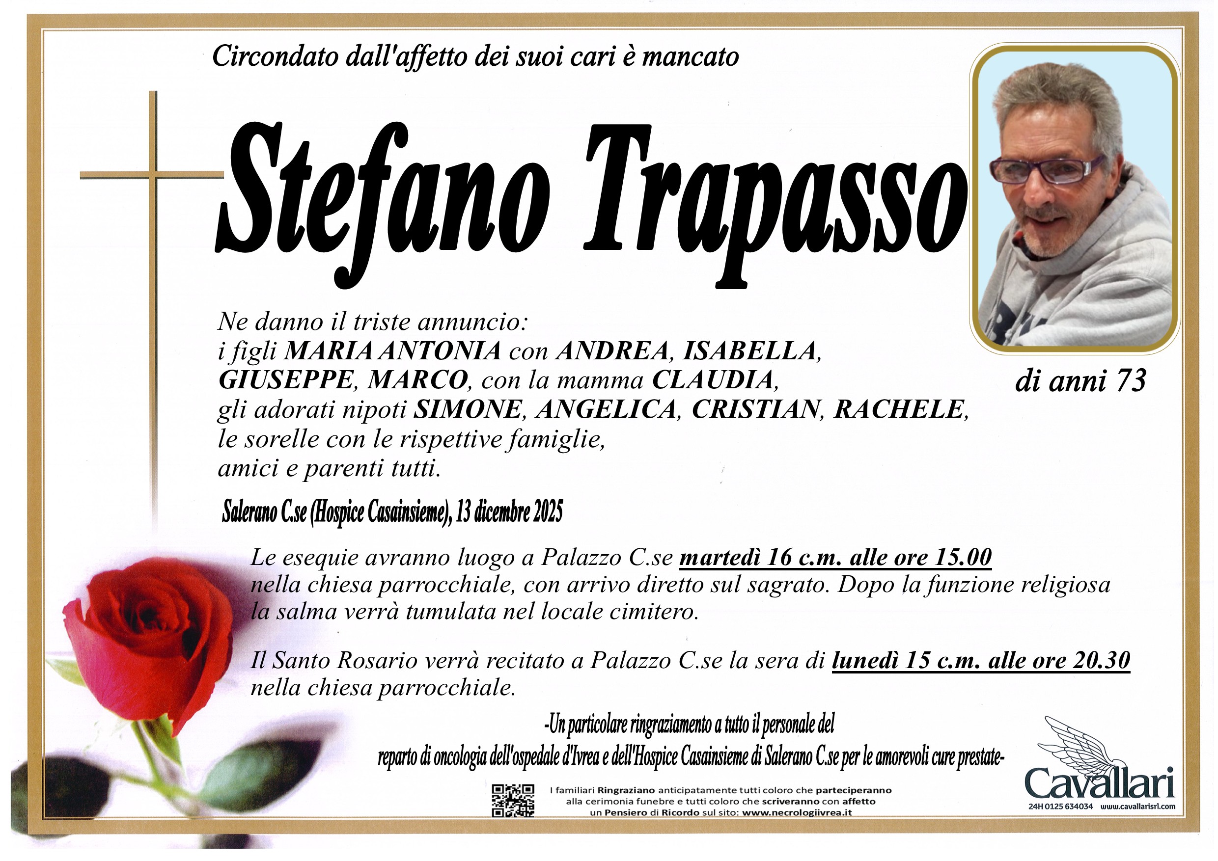 I familiari ringraziano anticipatamente tutti coloro che parteciperanno alla cerimonia funebre