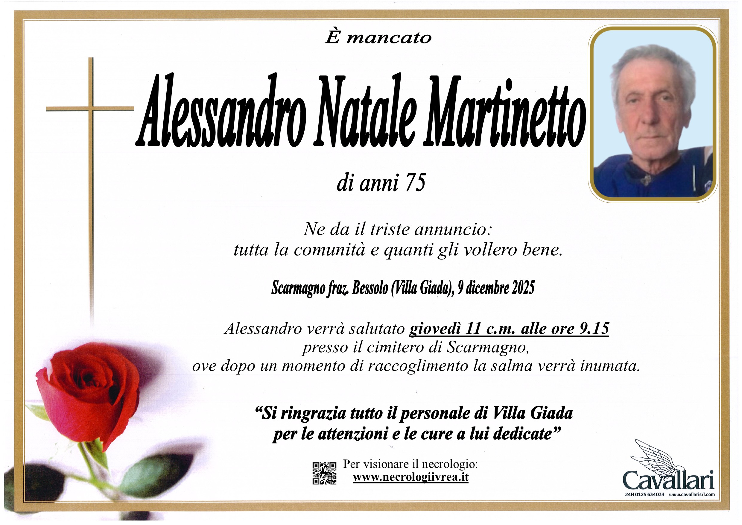 I familiari ringraziano anticipatamente tutti coloro che parteciperanno alla cerimonia funebre