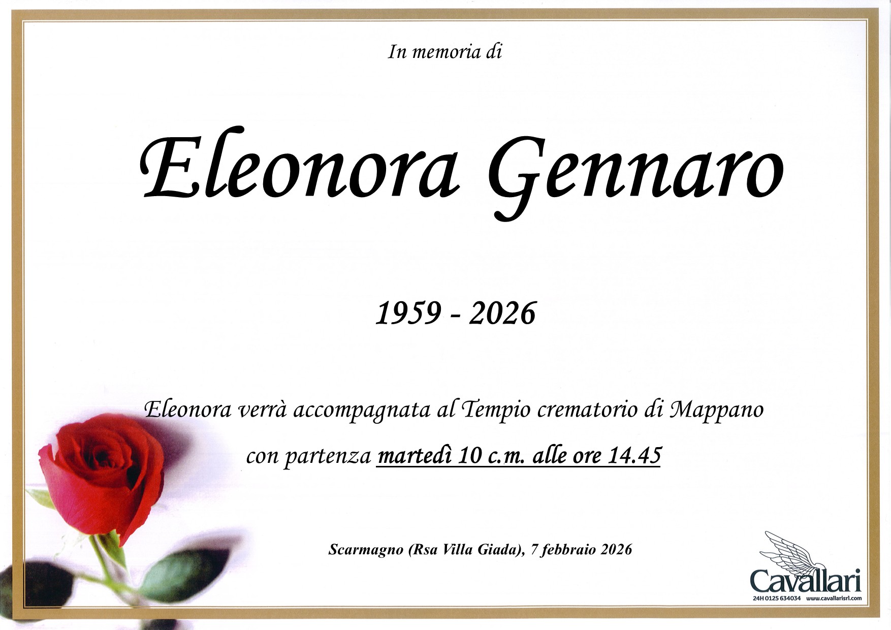 I familiari ringraziano anticipatamente tutti coloro che parteciperanno alla cerimonia funebre