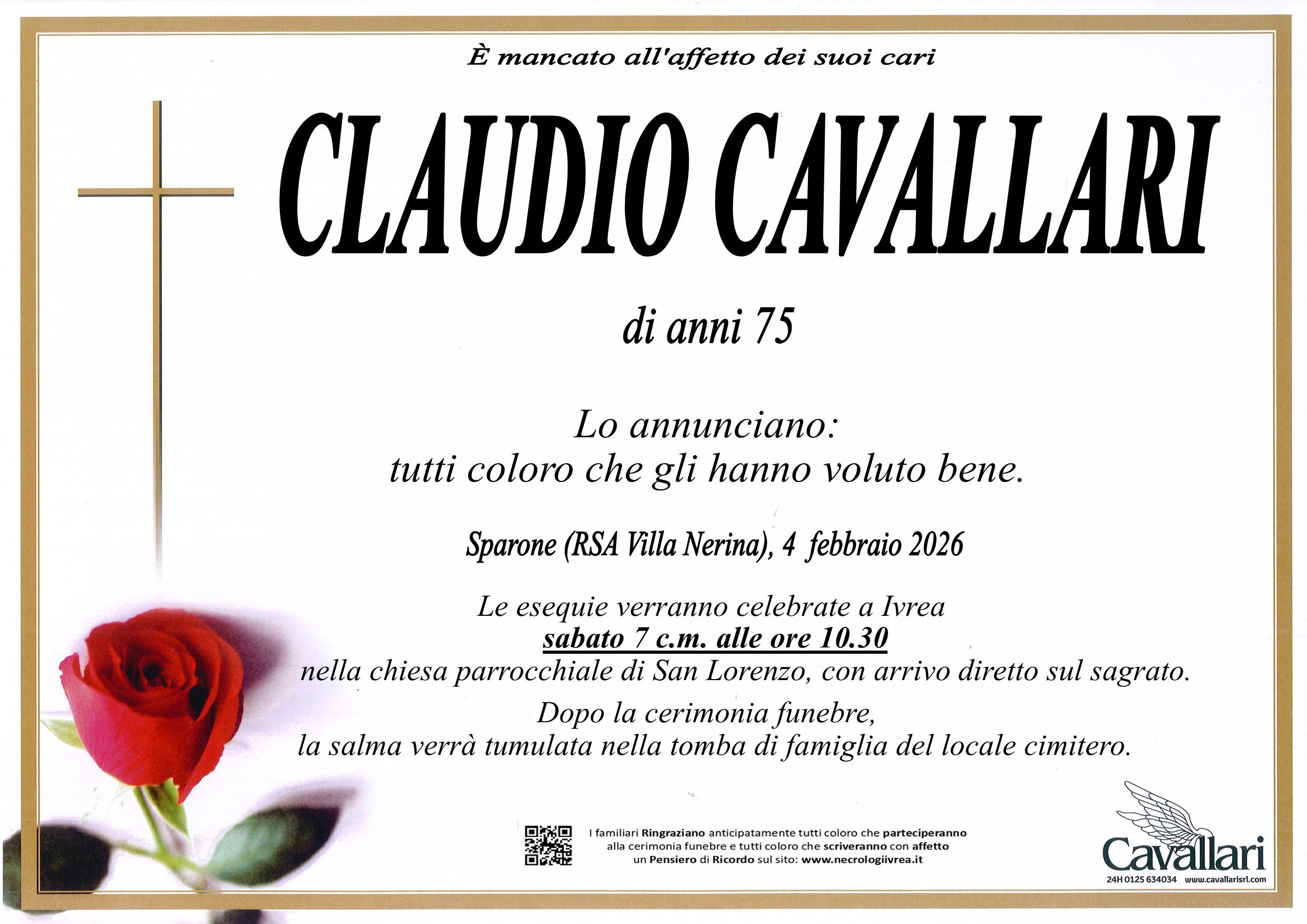 I familiari ringraziano anticipatamente tutti coloro che parteciperanno alla cerimonia funebre