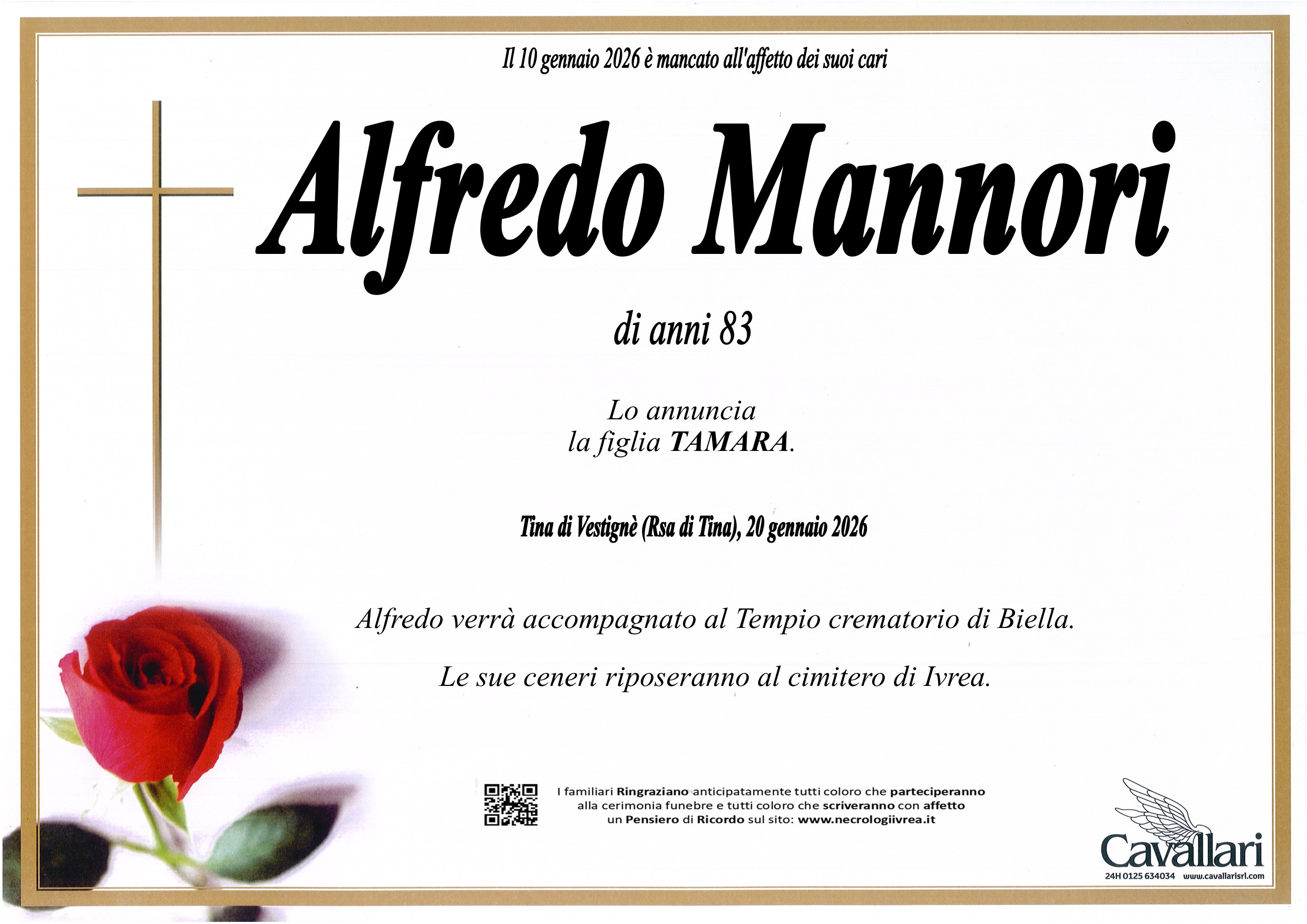 I familiari ringraziano anticipatamente tutti coloro che parteciperanno alla cerimonia funebre
