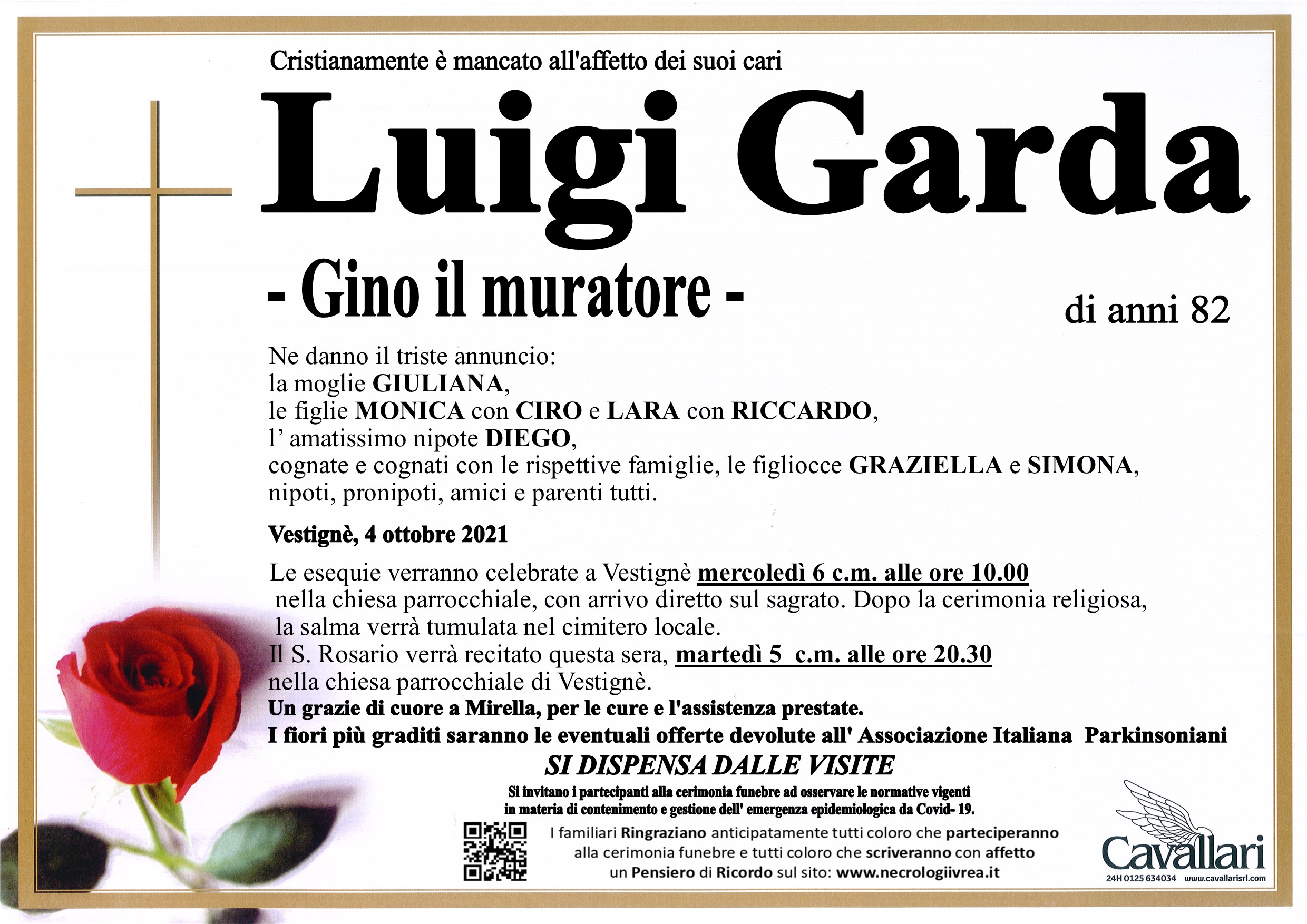 I familiari ringraziano anticipatamente tutti coloro che parteciperanno alla cerimonia funebre
