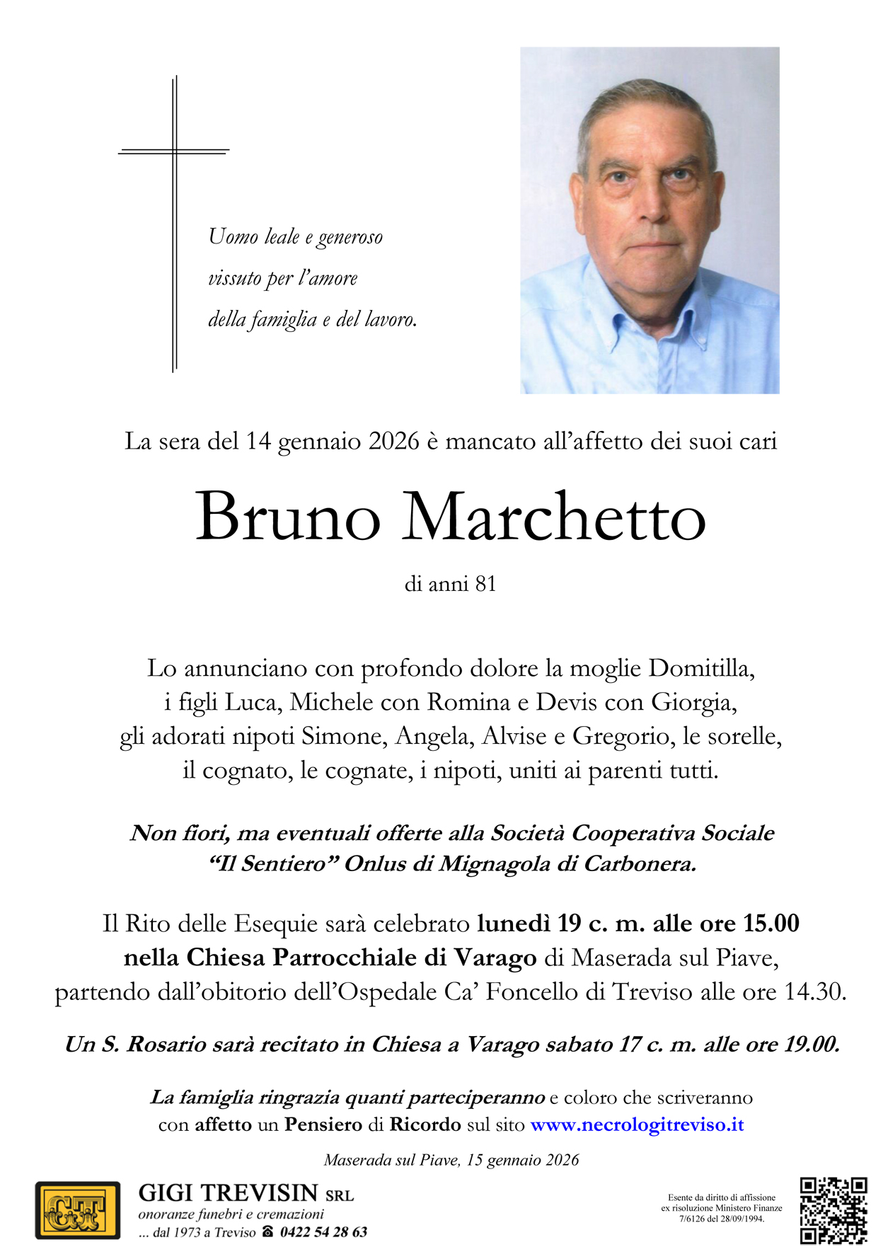 Sentite condoglianze a tutta la famiglia Marchetto. Remigio Garbin Patrizia Daniel
