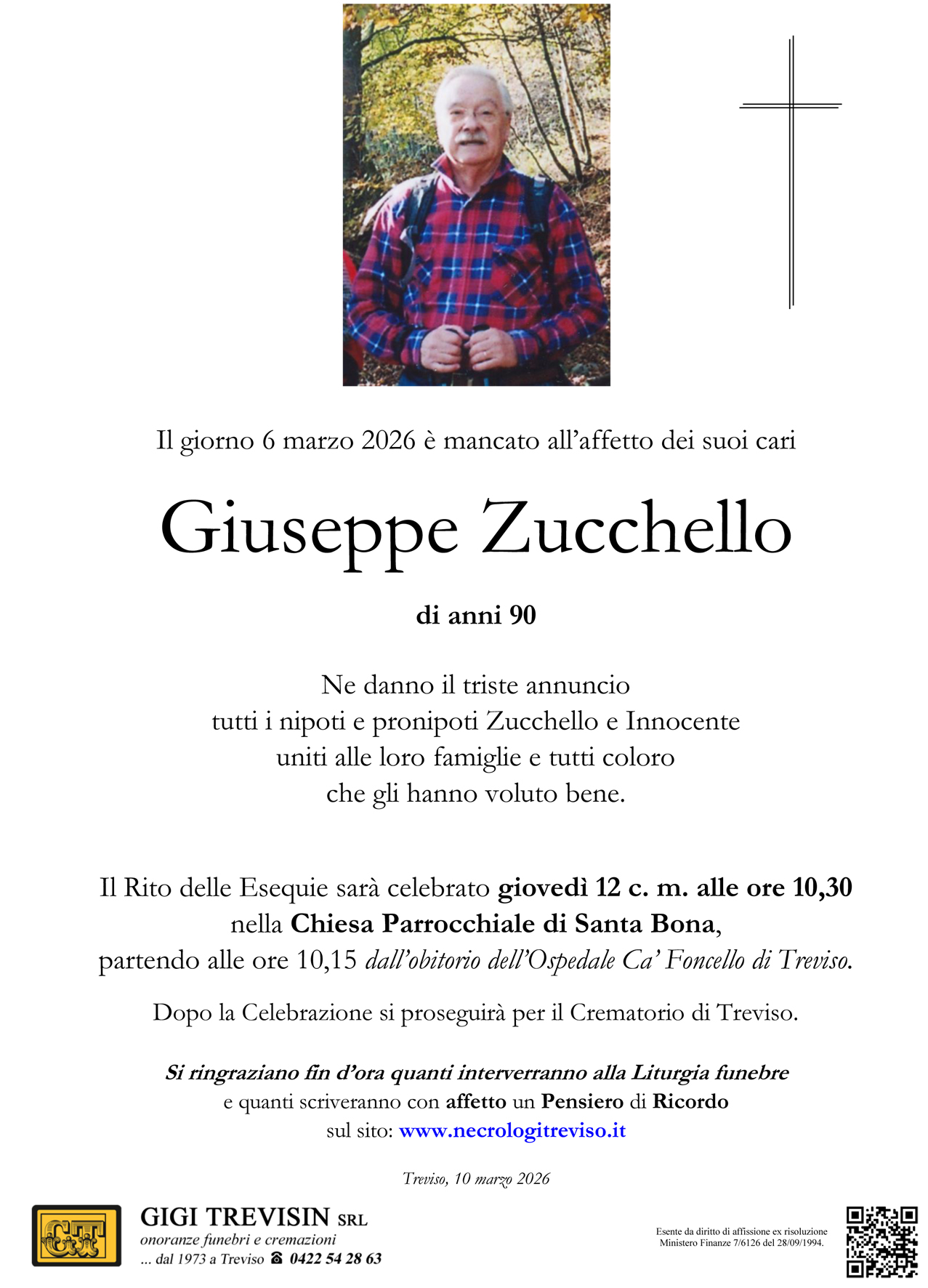 Si ringraziano fin d’ora quanti interverranno alla Liturgia funebre