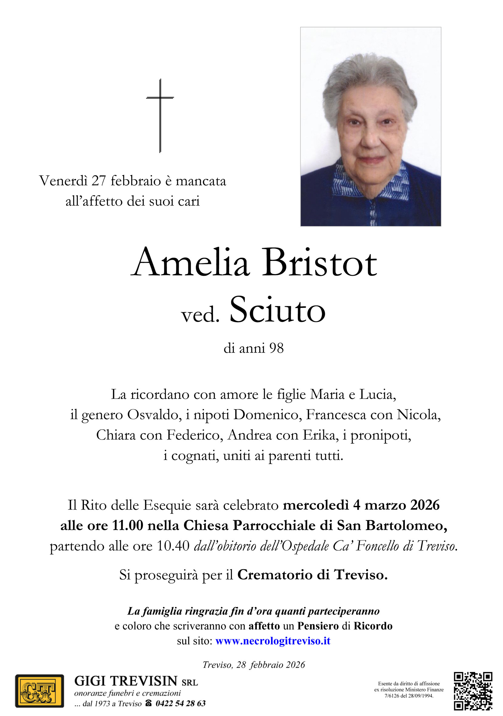 Ricordo ancora con piacere le giornate in cui da bambina ci si trova a fare quattro chiacchiere tra Amelia e i miei genitori. Le mie più sentite condoglianze. Mariarosa Tonetto