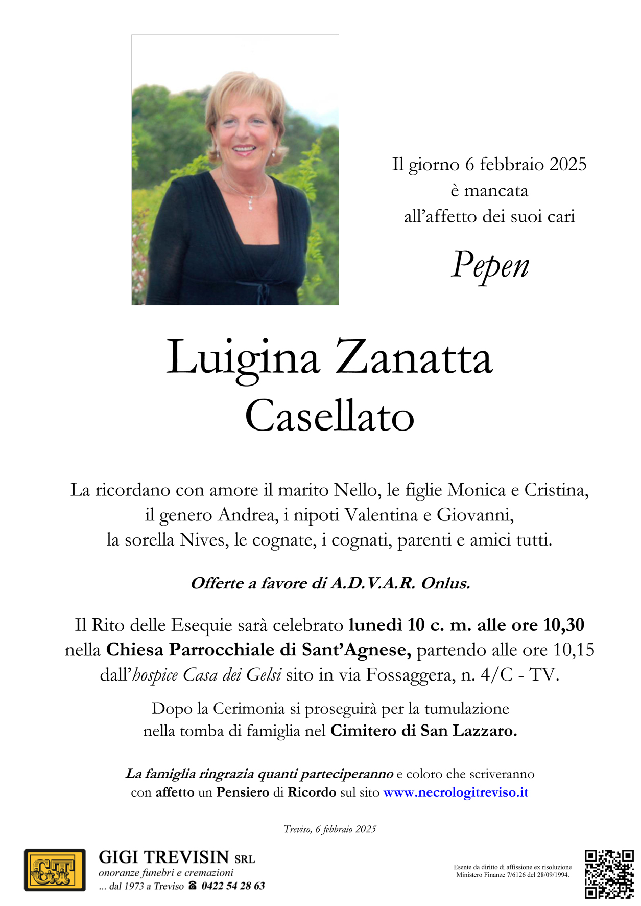 Clicca il pulsante qui sotto per visualizzare sulla mappa il luogo dove riposa Luigina Zanatta Casellato.