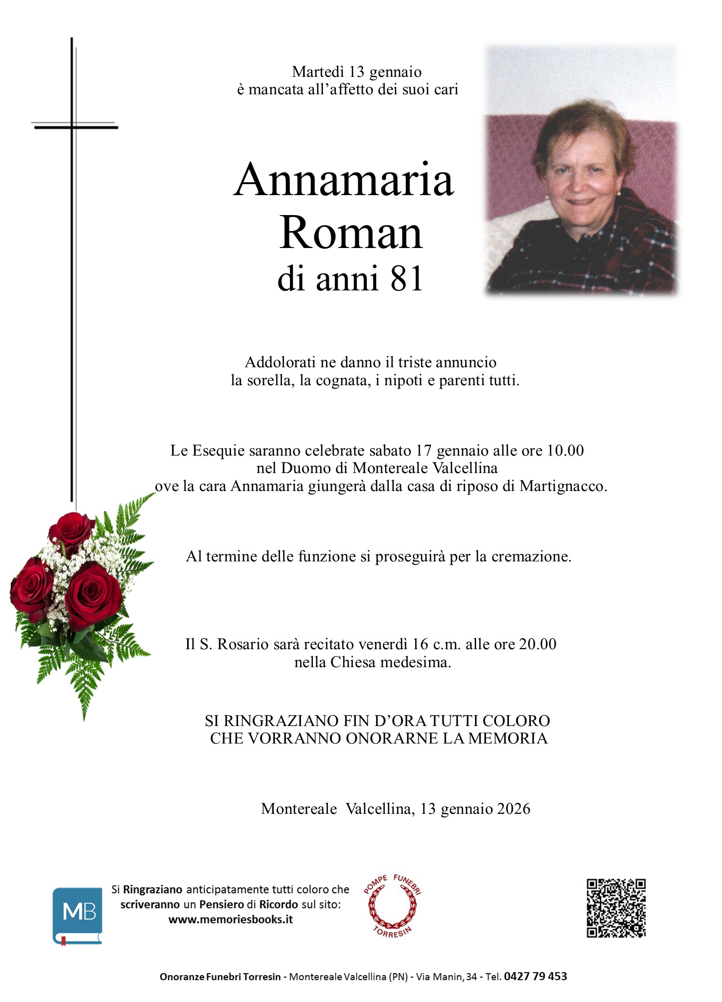 I familiari ringraziano anticipatamente tutti coloro che parteciperanno alla cerimonia funebre