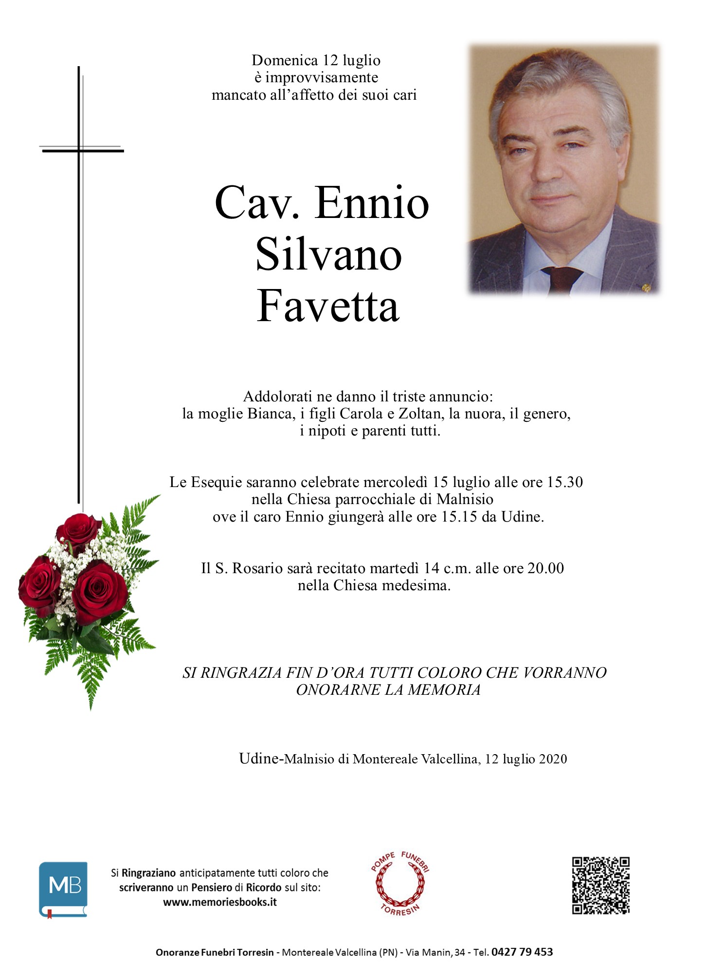 Vi siamo vicini in questo triste momento. Ricordiamo con affetto Ennio stimato professionista e amico. Sentite condoglianze. Emanuela, Pier e famiglia Canton Roberto