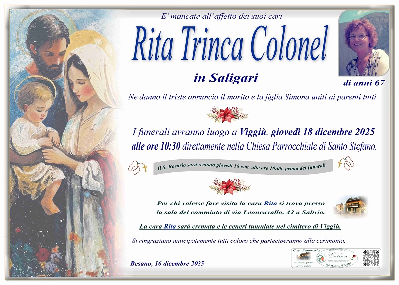 Il S. Rosario sarà recitato giovedì 18 dicembre alle ore 10:00 prima dei funerali.