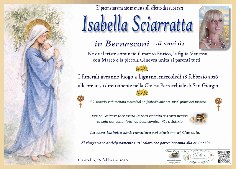 La cara Isabella sarà tumulata nel cimitero di Cantello.
