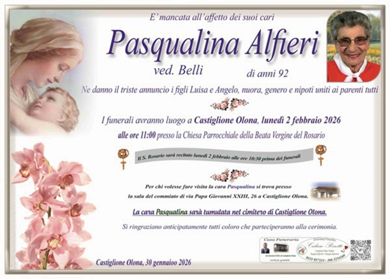 La cara Pasqualina sarà tumulata nel cimitero di Castiglione Olona.