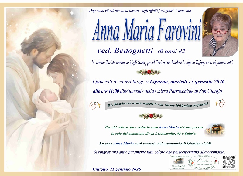 I funerali avranno luogo a Ligurno, martedì 13 gennaio 2026