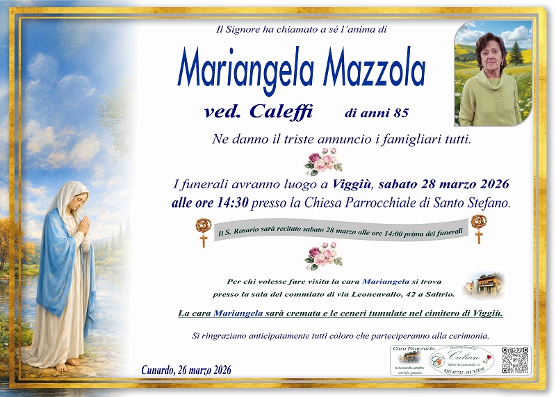 Il S. Rosario sarà recitato sabato 28 marzo alle ore 14:00 prima dei funerali.