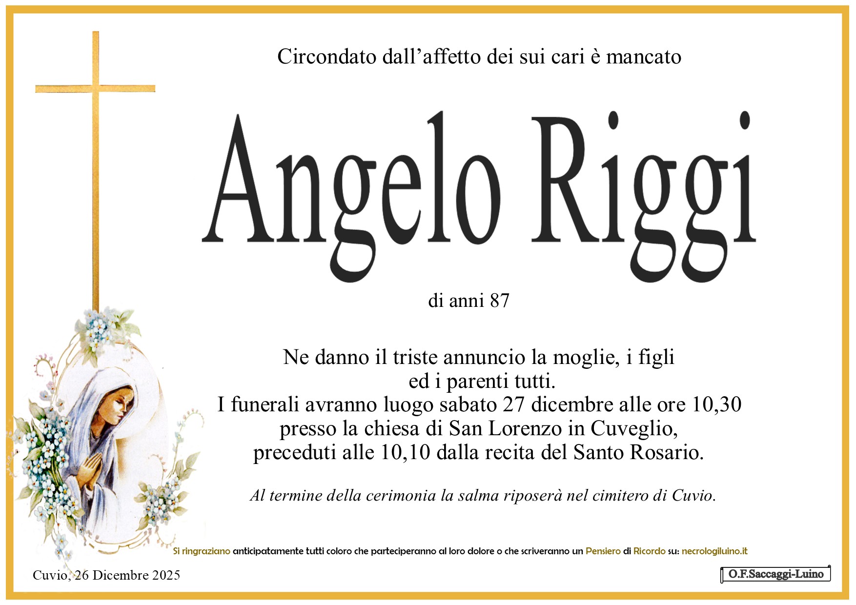I familiari ringraziano anticipatamente tutti coloro che parteciperanno alla cerimonia funebre