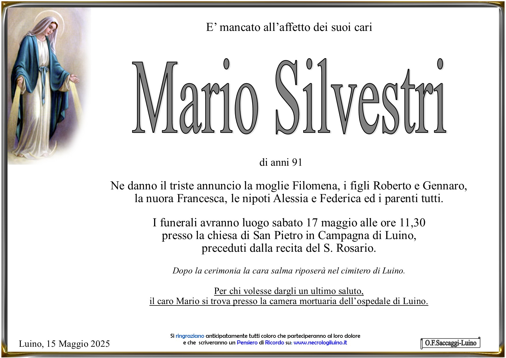 Nei miei anni lavorativi come cassiere alla Coop di Luino ho conosciuto il sig. Mario , una persona gentilissima ed educata, mi dispiace tanto tanto, buon viaggio sig. Mario ,r.i.p , condoglianze alla famiglia 🙏 🌹 Laura Segrada
