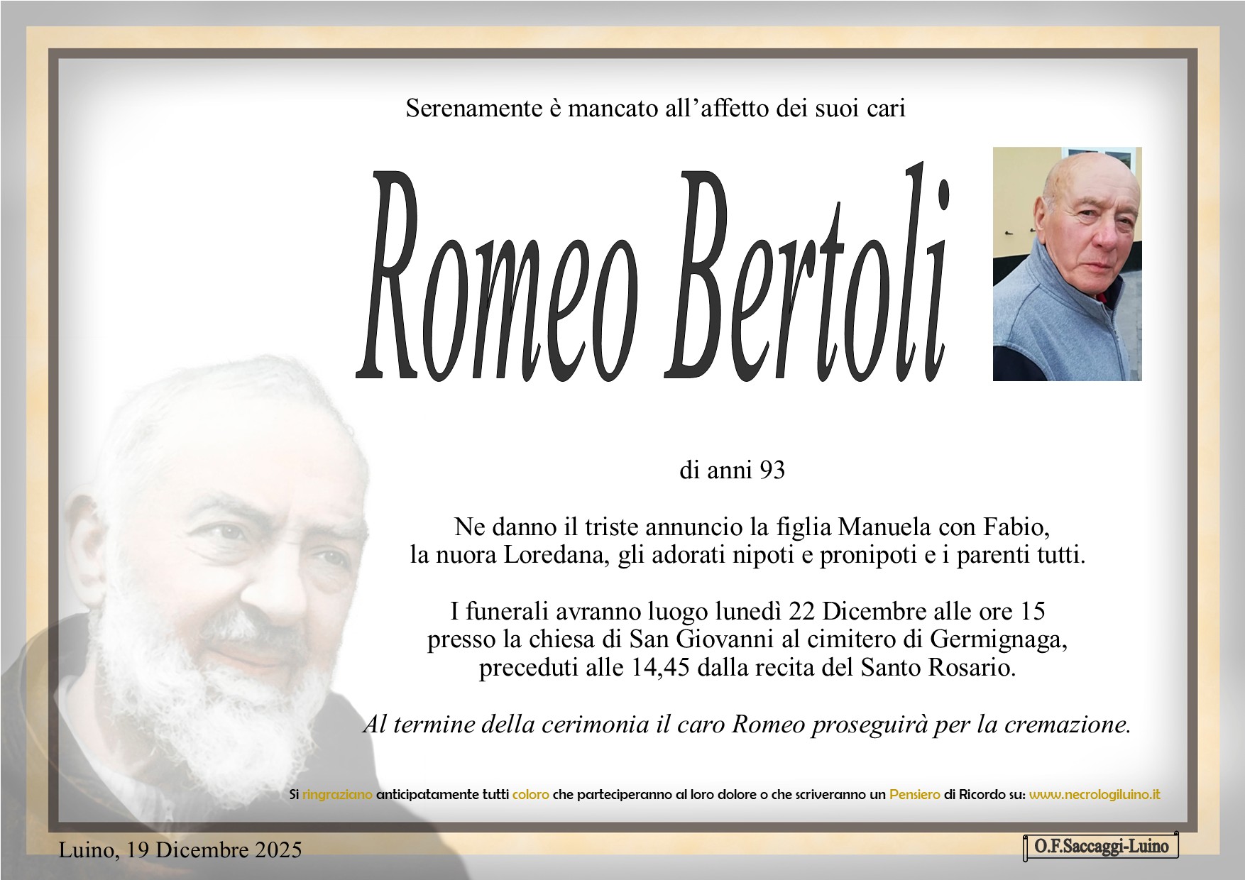 Fai buon viaggio Romeo ,lassù la tua cara Daria e il tuo amato Gianni ti stanno aspettando.Le nostre più sentite condoglianze a Manuela Fabio e Loredana Grazia e Giuseppe