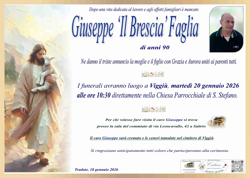 Il caro Giuseppe sarà cremato e le ceneri tumulate nel cimitero di Viggiù.