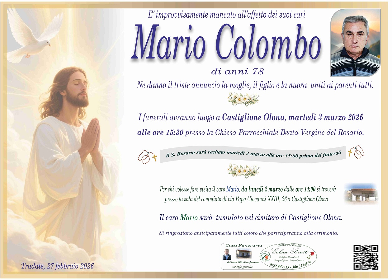 Il caro Mario sarà tumulato nel cimitero di Castiglione Olona.