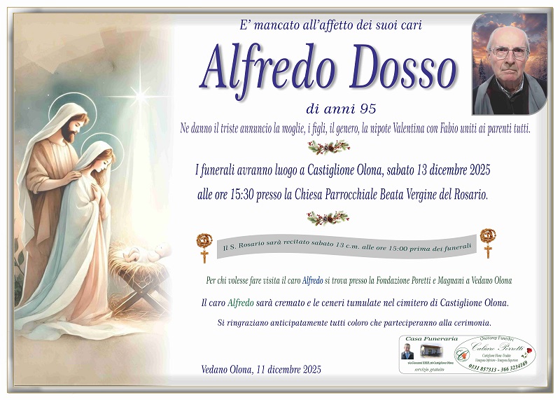 Il caro Alfredo sarà cremato e le ceneri saranno tumulate nel cimitero di Castiglione Olona.