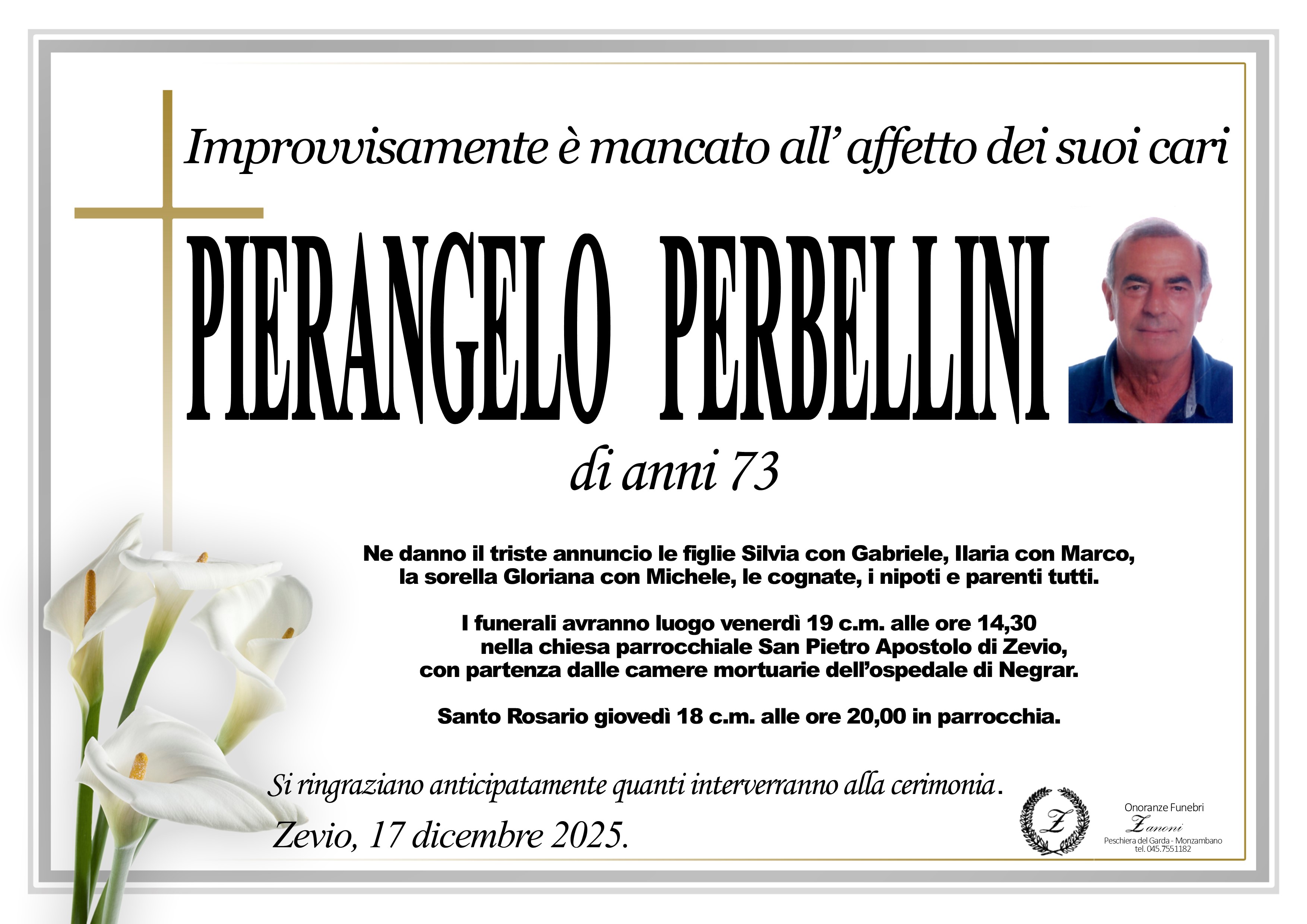 I familiari ringraziano anticipatamente tutti coloro che parteciperanno alla cerimonia funebre
