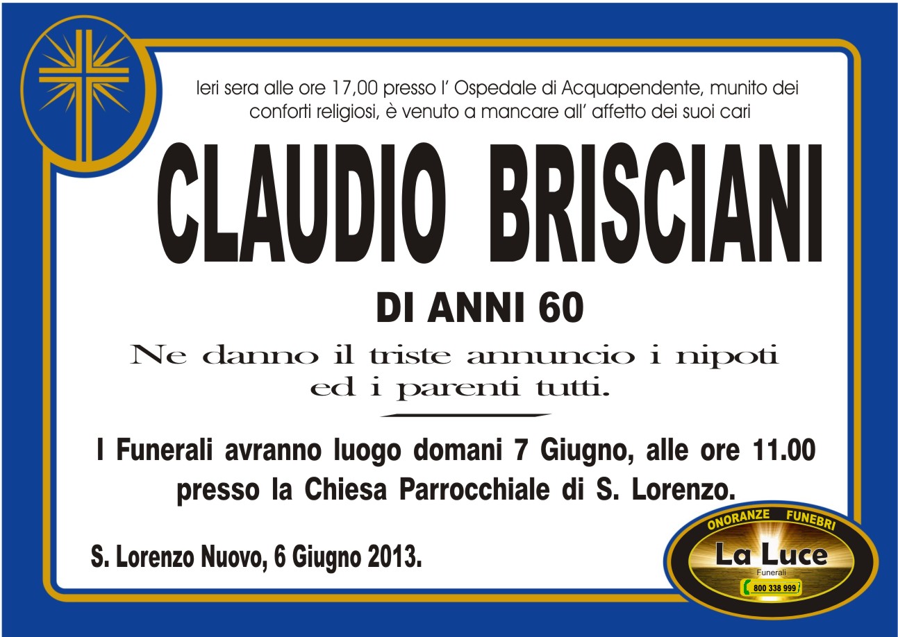 Clicca il pulsante qui sotto per visualizzare sulla mappa il luogo dove riposa Claudio Brisciani.