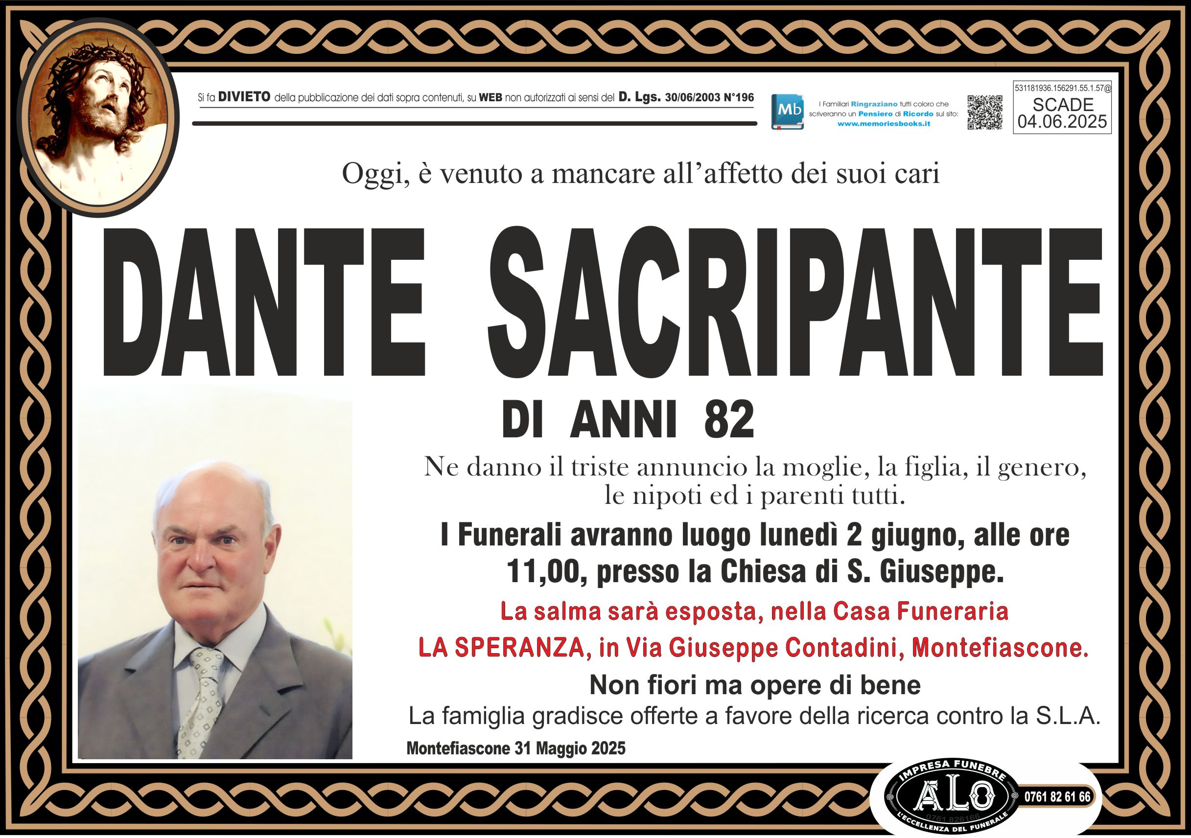I Funerali avranno luogo lunedì 2 giugno, alle ore 11,00, presso la Chiesa di S. Giuseppe.