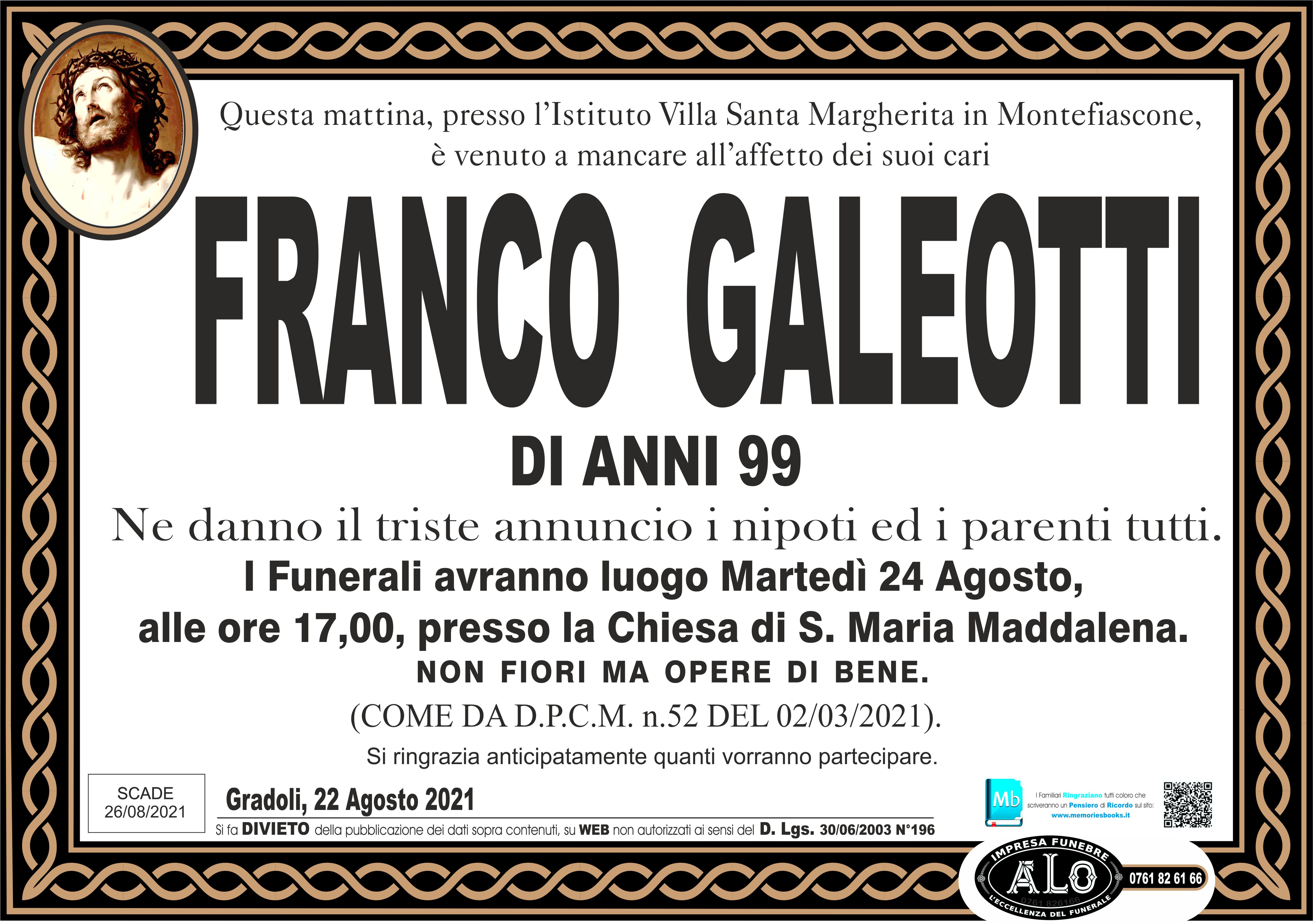 I familiari ringraziano anticipatamente tutti coloro che parteciperanno alla cerimonia funebre