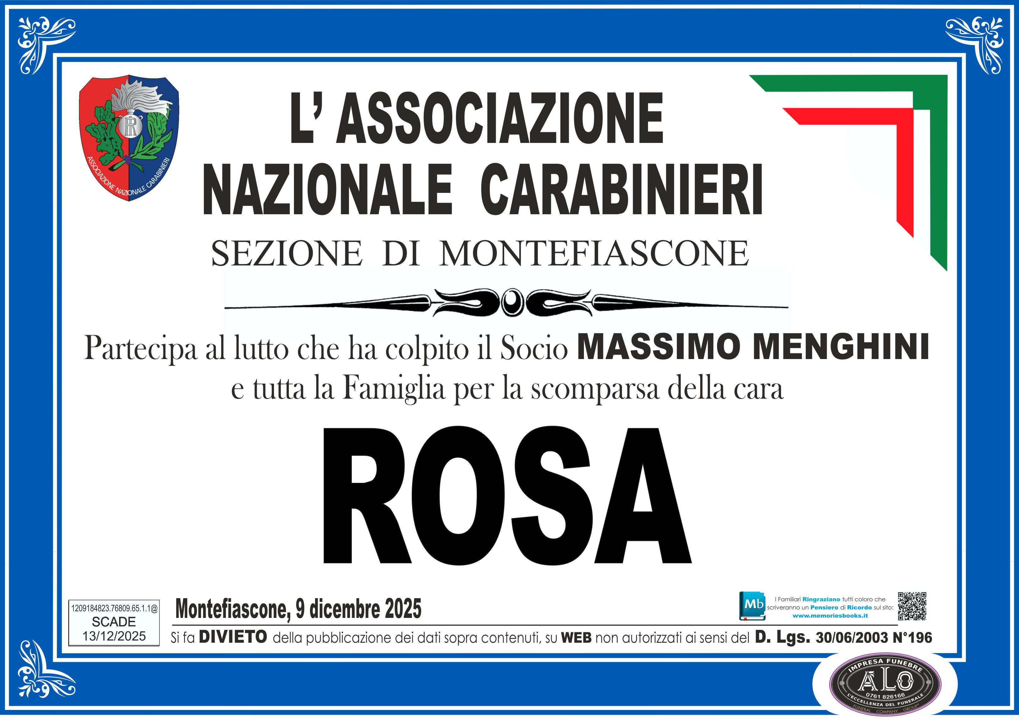 I Funerali avranno luogo domani 9 dicembre, alle ore 15,00,